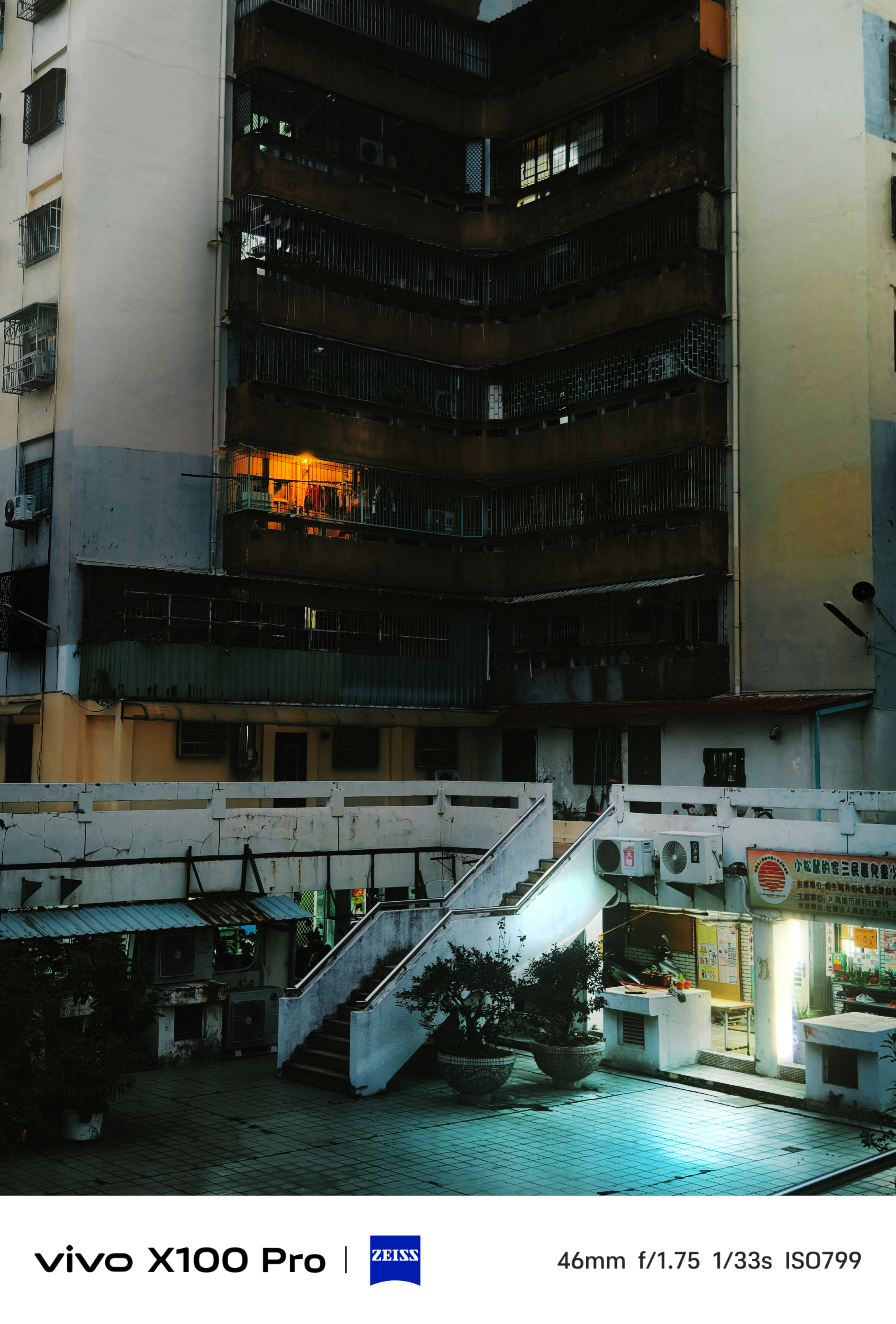 X100 Pro夜景對於眩光做的更好,鍍膜增強與算法提升,並支援 OIS 光學防手震,在夜間環境不佳時也能拍出隨手可得大景,而且夜間無噪點純淨度高,V3晶片所呈現的顏色濃郁度上更為深化,對比數值明顯有所增長,成像線條感強烈,高動態亮暗部細節處理恰當,vivo 原像引擎演算法與新蔡司T*鍍膜面對高光也能有效壓制,平衡好曝光讓細節浮現,不再是X90PRO+身上那些微淡色系